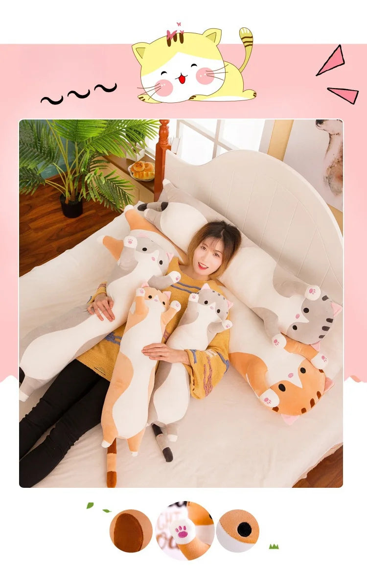 Cute Cat Plush Body Pillow - Creative Kawaii Cartoon