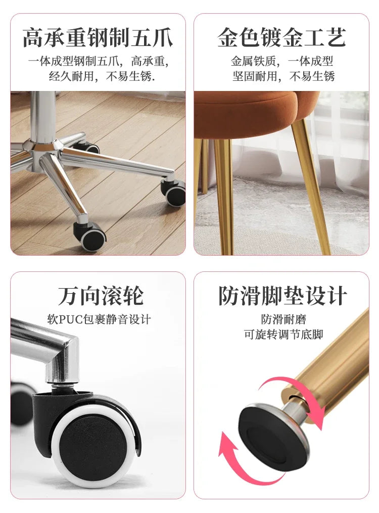 High Back Comfy Makeup/Office Stool Luxury Pouf Nordic Mobile Vanity Chair Design Chaise